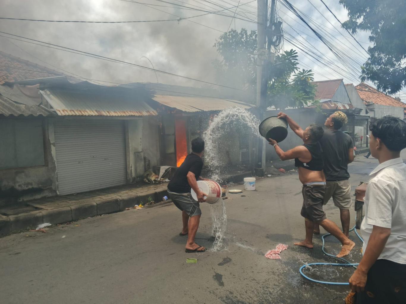 Warga sekitar melihat api sudah membesar dan membantu menyiram dengan seadanya sebelum petugas Damkar tiba. Pengontrak tidak ada di lokasi karena sedang melaksanakan upacara keagamaan.