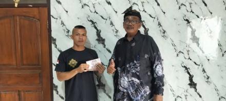 Bapak Perbekel menyerahkan bantuan bagi atlit tinju dari Desa Sangsit